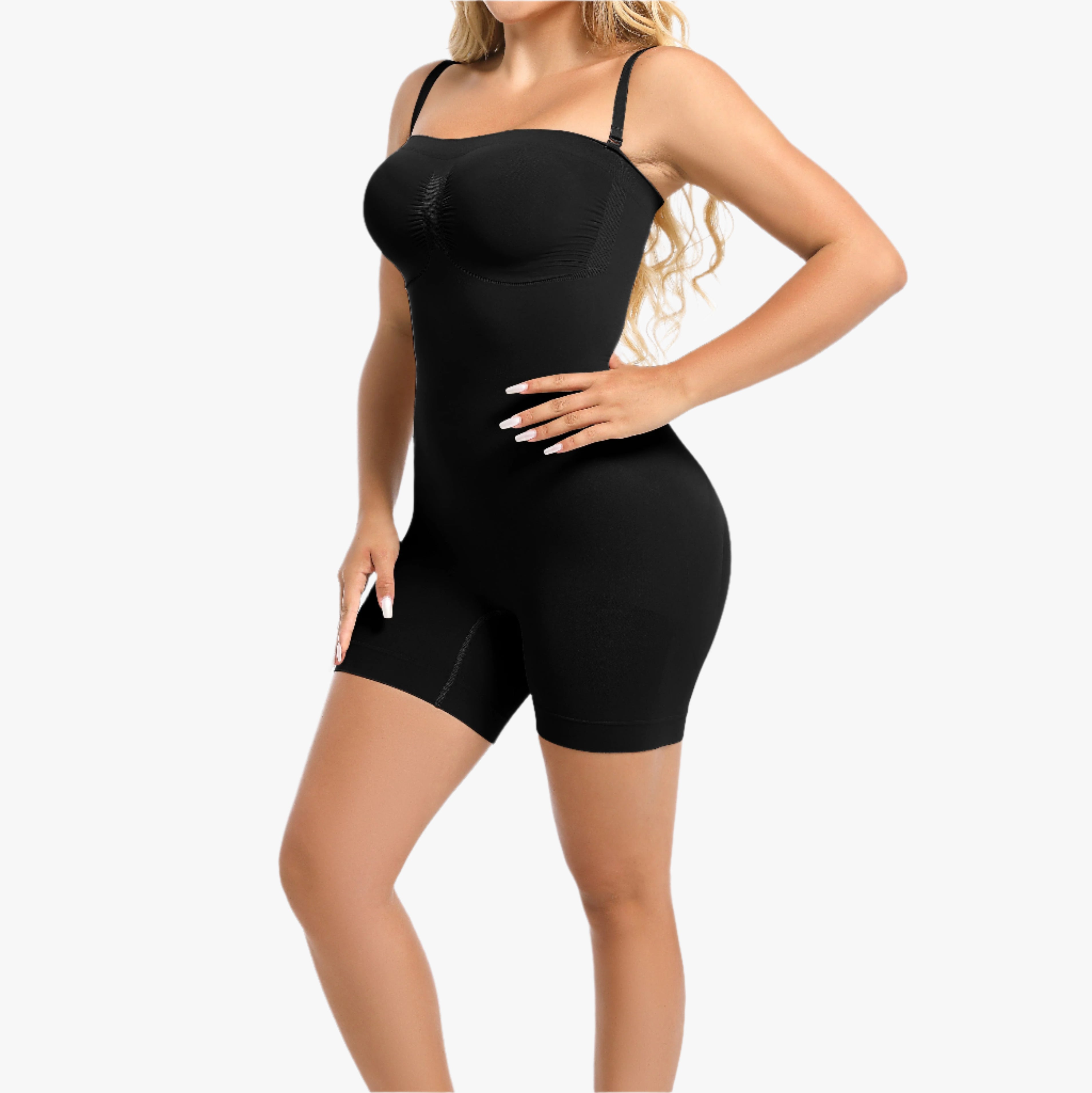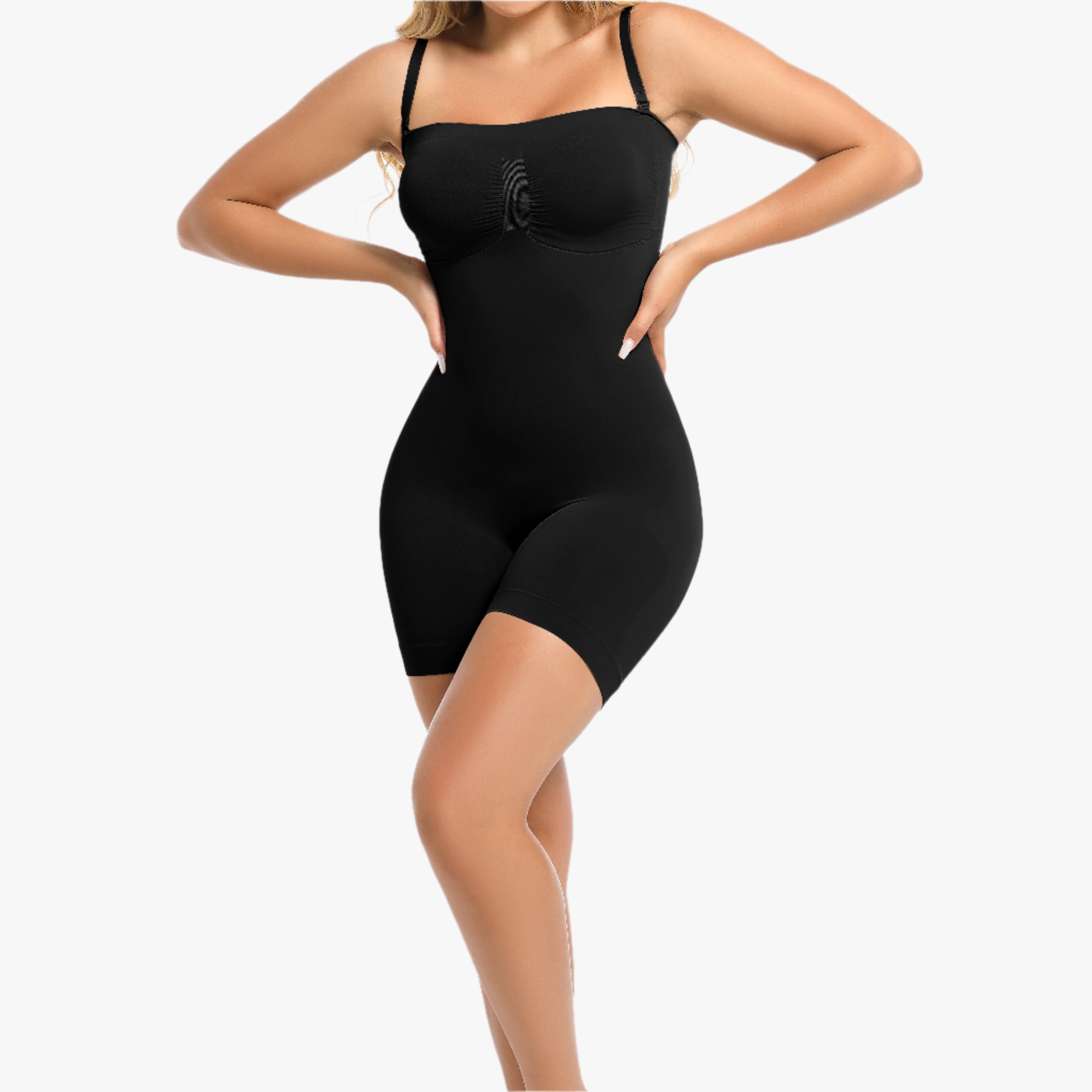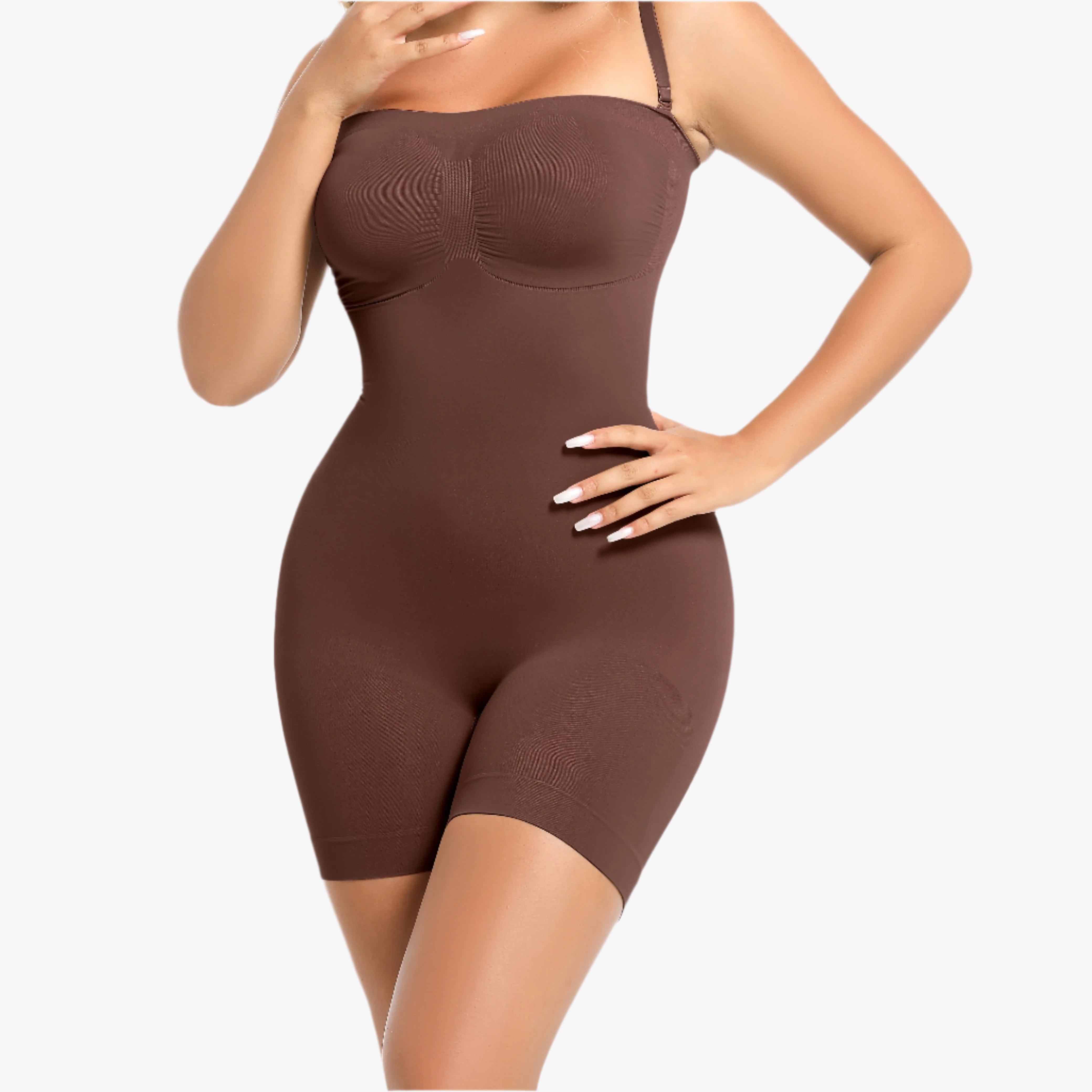 Your go-to for seamless shaping and styling flexibility. This versatile bodysuit smooths the bust, core, and thighs with a sculpted fit that stays invisible under your look. Designed with removable straps, it adapts effortlessly to both strapless and strapped outfits. The mid-thigh length provides extra coverage and a sleek silhouette — perfect for weddings, nights out, or everyday confidence.