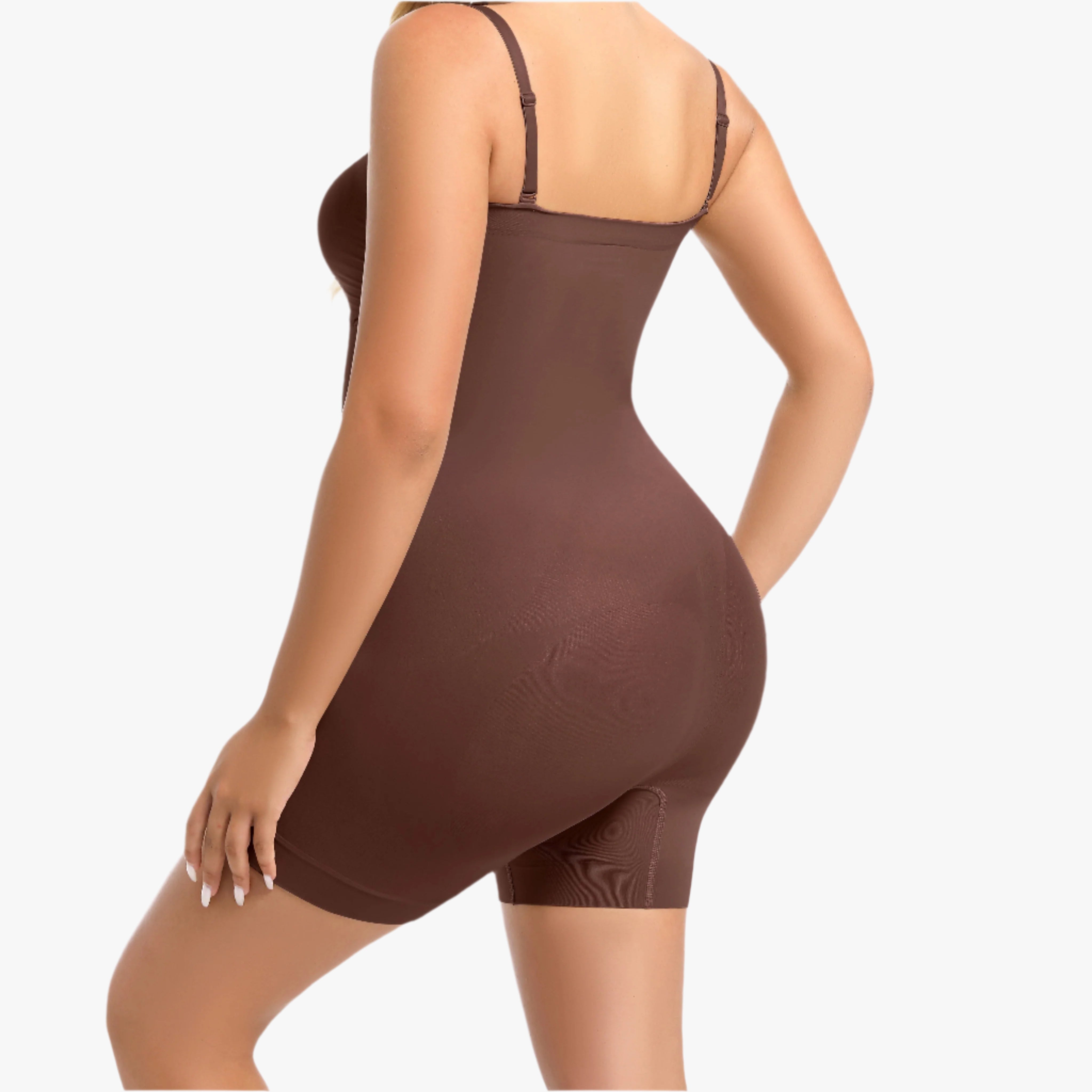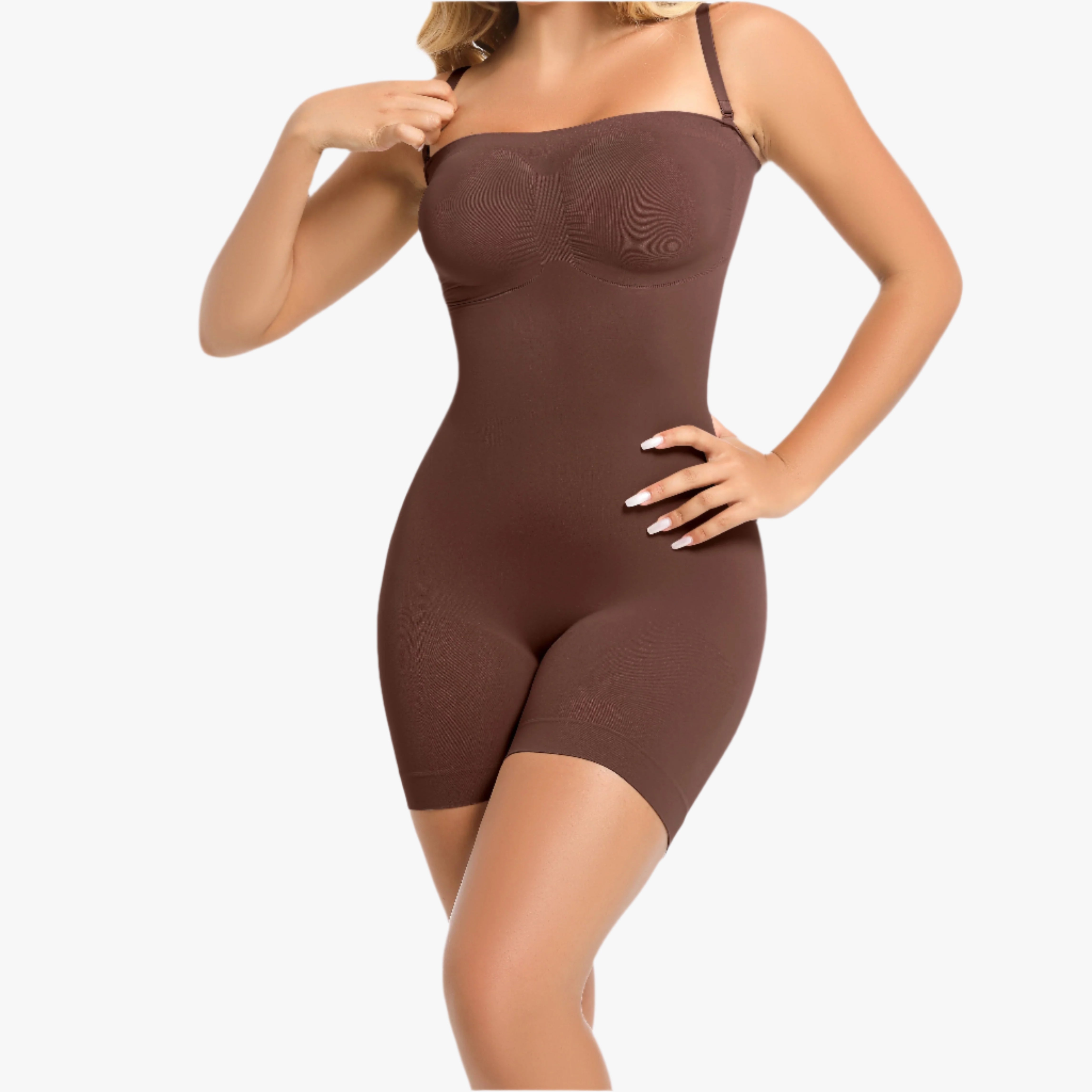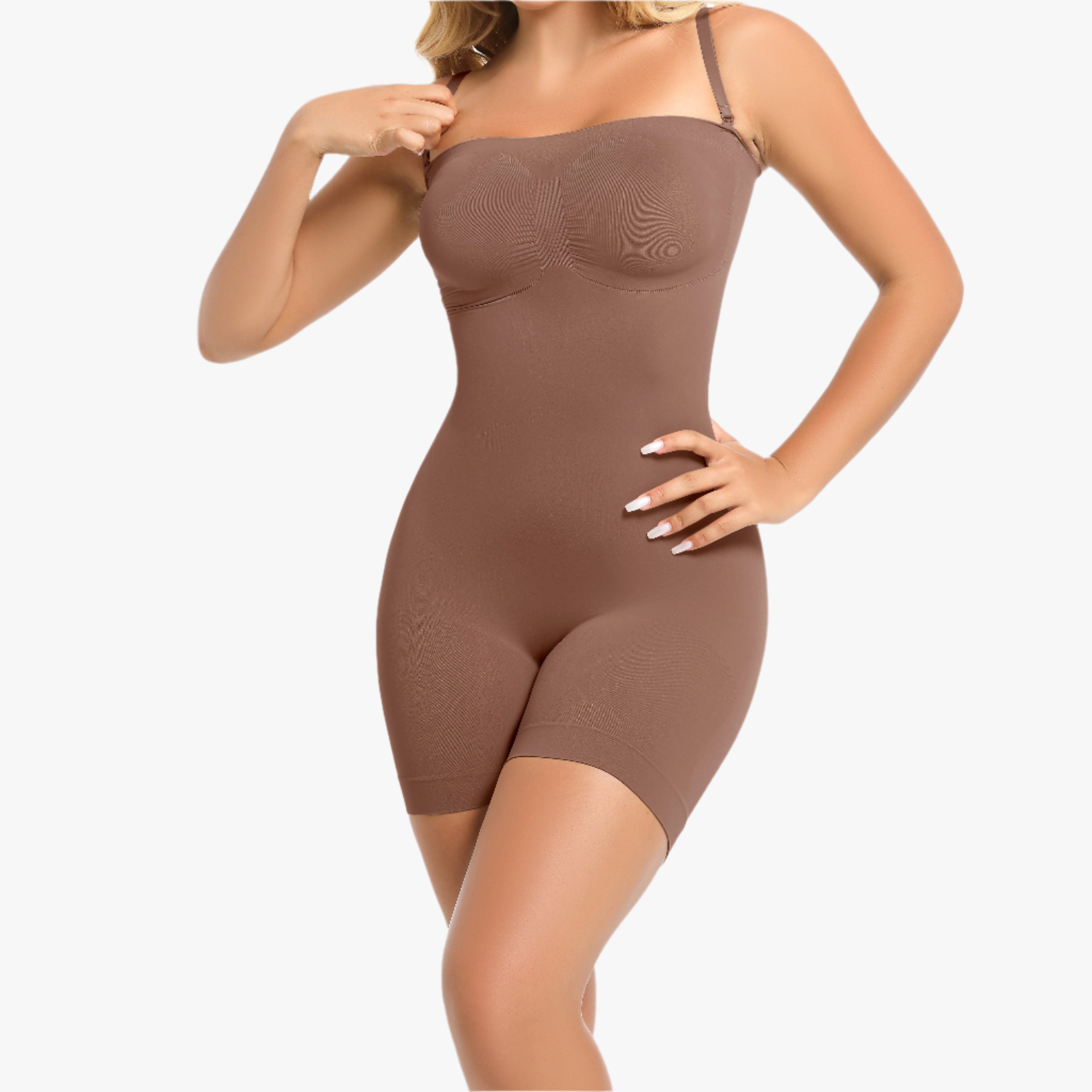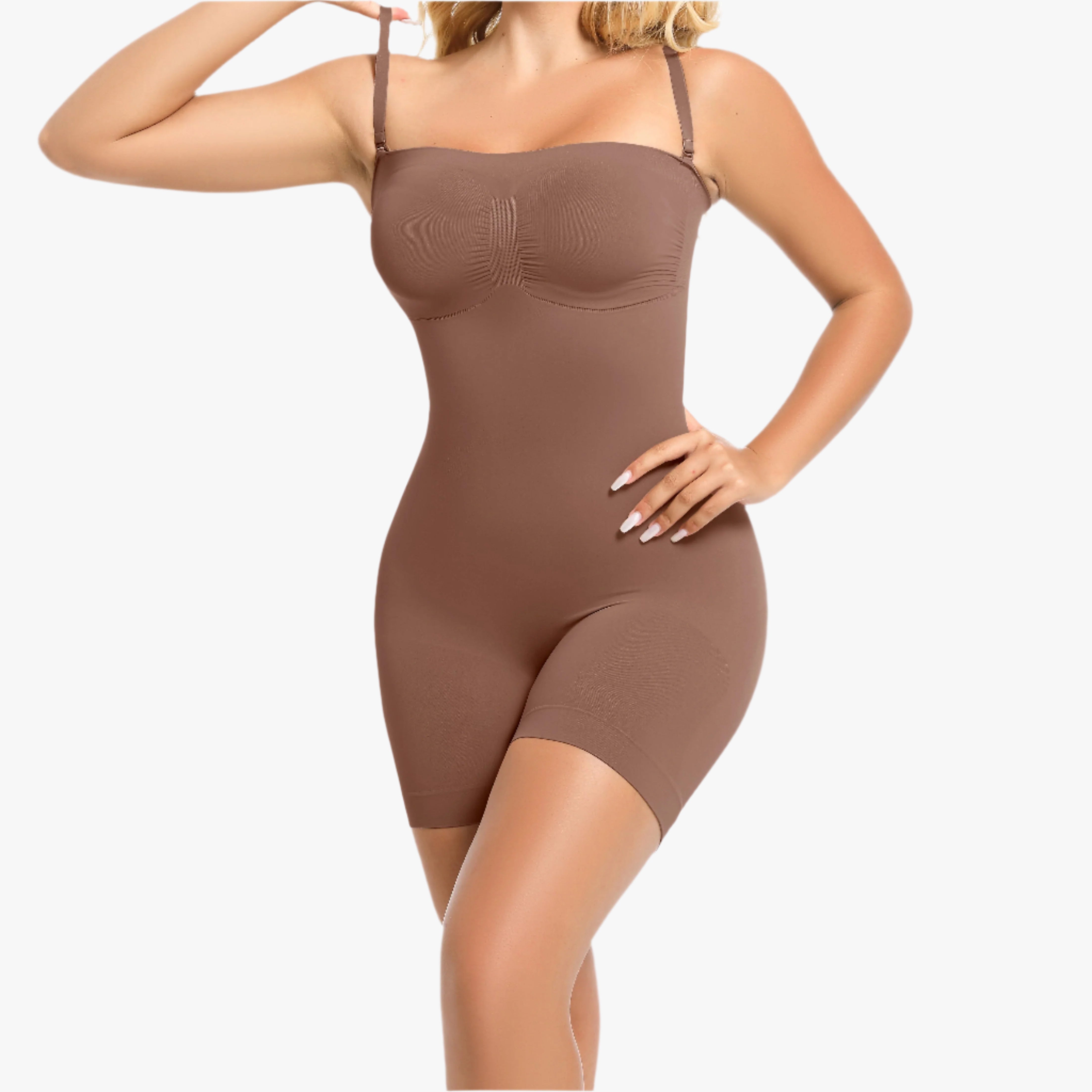Your go-to for seamless shaping and styling flexibility. This versatile bodysuit smooths the bust, core, and thighs with a sculpted fit that stays invisible under your look. Designed with removable straps, it adapts effortlessly to both strapless and strapped outfits. The mid-thigh length provides extra coverage and a sleek silhouette — perfect for weddings, nights out, or everyday confidence.